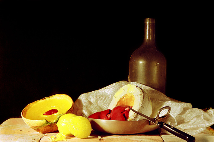 Cette série photographique interroge la notion de nature morte contemporaine. Jouant des codes, des symboles et de la théâtralité de ce thème pictural traditionnel, Hélène Singer produit des compositions photographiques où l’apparente quiétude des scènes inanimées est troublée par des éléments décalés, organiques ou en cire. Anima naturalis : présence de la vie animale dans les natures mortes, mais aussi nature animée par un jeu d’illusion qui déconstruit l’opposition entre le vif et le mort, le vrai et le faux, la chaleur et le froid.