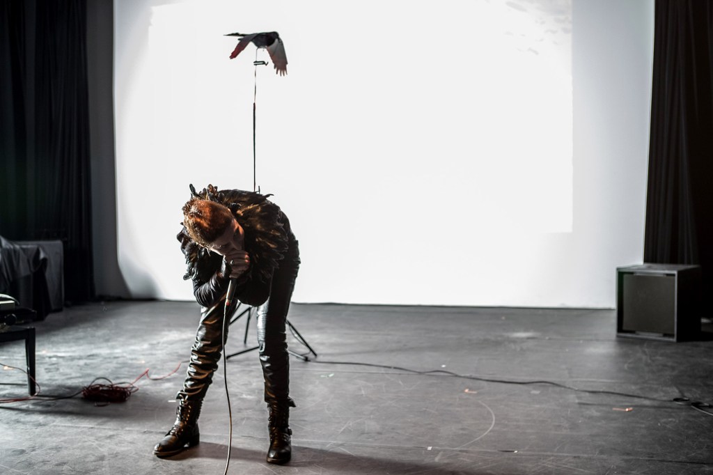 Ses performances prennent de plus en plus la forme de concerts éphémères et hybrides, où le spectateur est immergé dans un hors-temps singulier visuel et sonore. Entre monde burlesque et charge émotionnelle, elle crée une interaction entre sa voix, son action et une vidéoprojection, dans un procédé de mise en écho de références littéraires, sociales et musicales. Les éléments qu’elle crée pour ses performances se transforment ensuite en installations, objets et vidéos, intégrés en tant que tels dans l’exposition.
